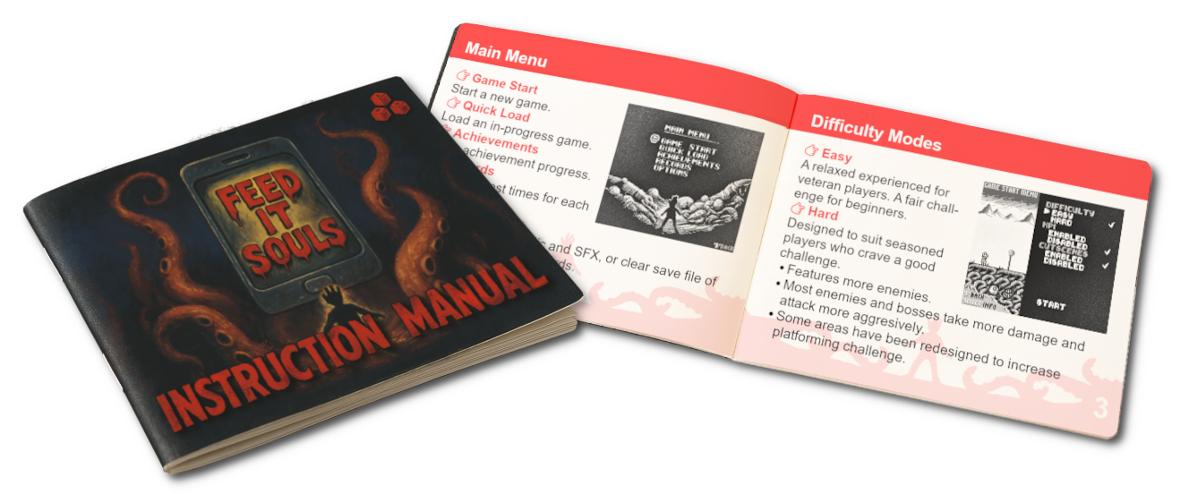 In addition to a Game Boy Color ROM, "FITS: DOME" also comes with a digital manual in the style of classic GBC manuals from the late 1990s and 2000s.