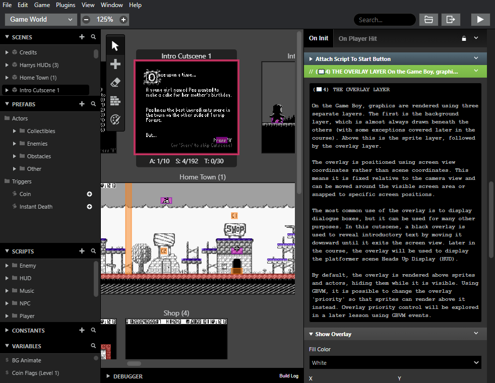 From menus to cutscenes and obstacles to enemies, the Let's Build A Platformer! course offers everything you need to create a platformer game from start to finish using GB Studio 4.2.x. For those new to GB Studio, LBaP! also acts as an introductory course for GBS itself, whether or not you’re interested in making platformer games.